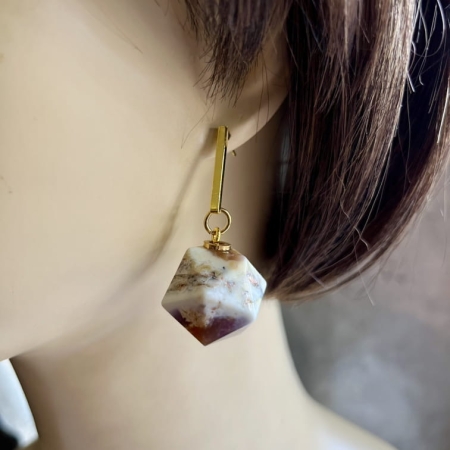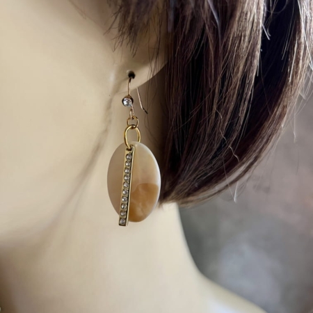 این گوشواره از یک جفت آویز به شکل پر ساخته شده که بر روی آن ها نگین های شیشه ای هفت رنگ نصب شده است.