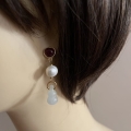 گوشواره ای زیبا از یک جفت مروارید پرورشی غلتان که به آویزهایی از سنگ اونتورین متصل شده اند.