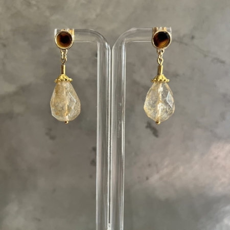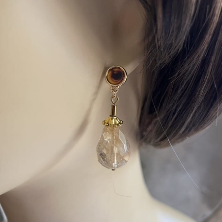 گوشواره تابستانی، سبک و جذاب از صدف دیسکی که با زنجیرهای استیل به یک جفت پایه دیسکی با تلفیق چوب و رزین متصل شده اند.